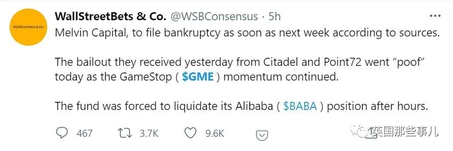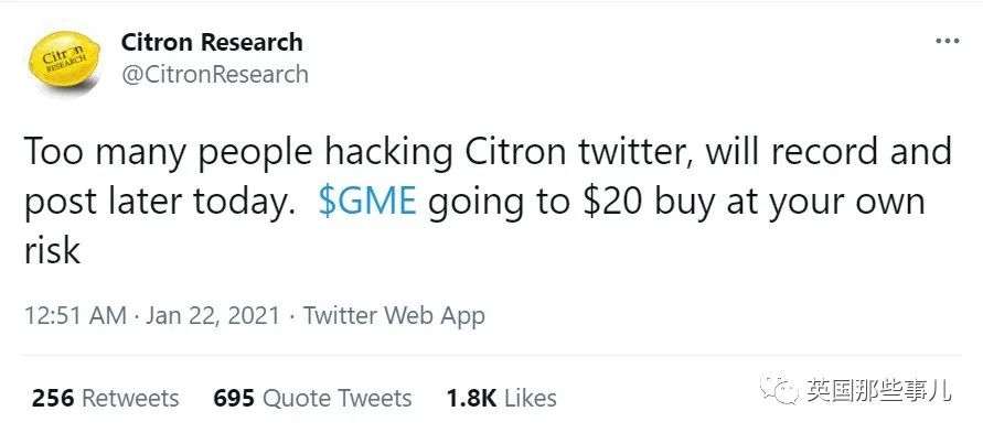 香橼研究公司1月19号还在推特上开嘲讽,说散户根本不懂游戏规则。