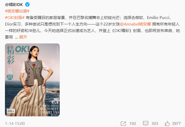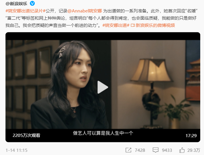 自从姚安娜在生日当天官宣出道以来,关于她的热搜基本就没有断过。