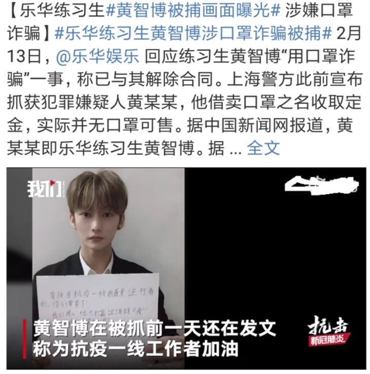 这种说法让我想到了,疫情期间一条关于失格艺人因为口罩诈骗被捕的新闻。