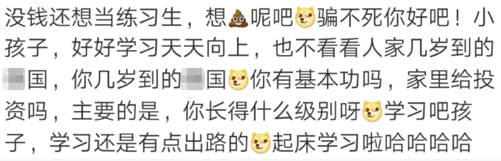 但现在好像不一样了,公司甚至还反过来要给各种培训费用。最终我们看到的结果便是,只有有钱人才配当练习生、才配出道当艺人。