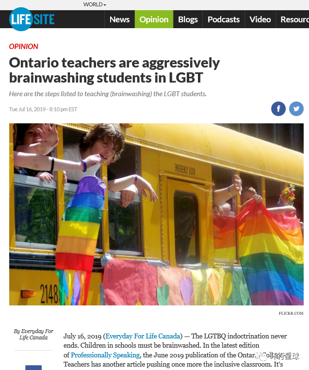 媒体控诉教师对学生的LGBT洗脑宣传。
