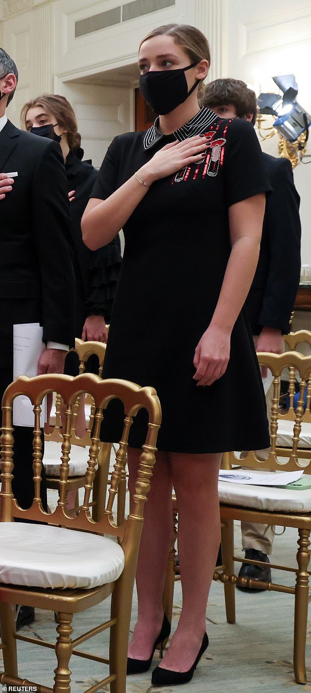 21岁的芬尼根是拜登的第二个孙女,当天她穿了一条小黑裙,搭配同色的高跟鞋,看起来很是端庄大方。尽管有些微胖,但从容貌看芬尼根的确很青春靓丽。