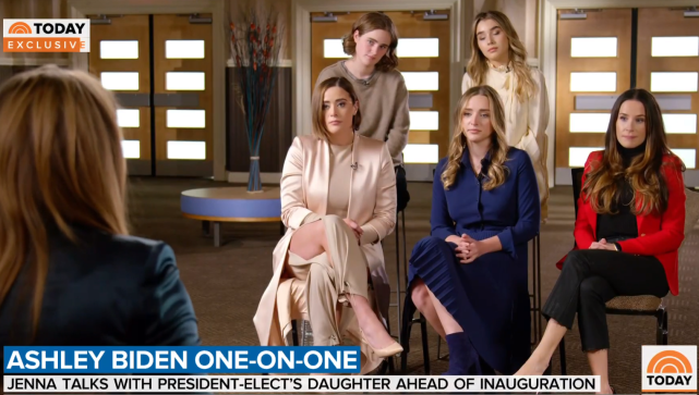 几天前四姐妹还陪伴着她们的姑姑-阿什利,出现在专访中,而采访她们的人也曾当过第一千金,那就是小布什的女儿-珍娜·布什·黑格(Jenna Bush Hager)。
