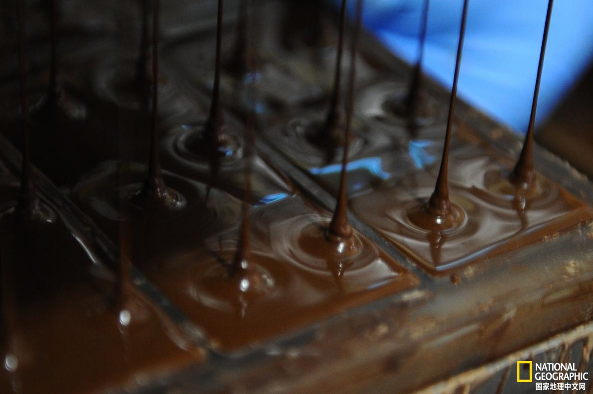 位于基多的帕卡里工厂内,巧克力在模具中融化。