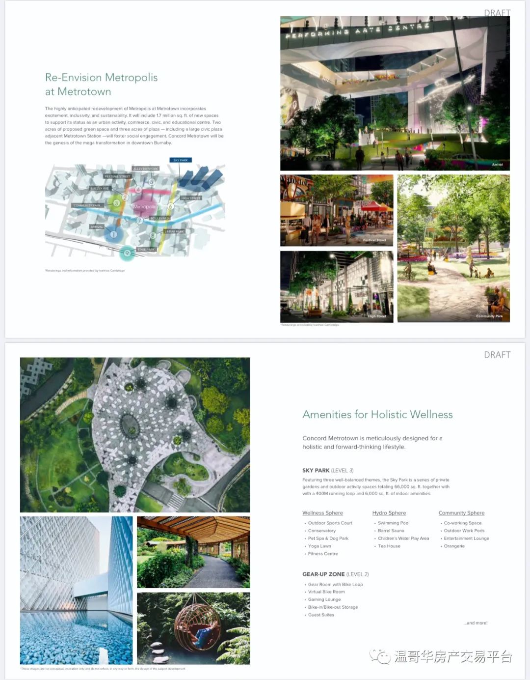 项目概括:cncord metrotown 是SKY PARK 的三栋奢华高层公寓,在metrotown SEARS的商城位置,总共65层,第一期1309个住房单位,8500尺餐厅空间,4000咖啡零食区,1485停车位。大楼三楼66000尺的sky park会所。