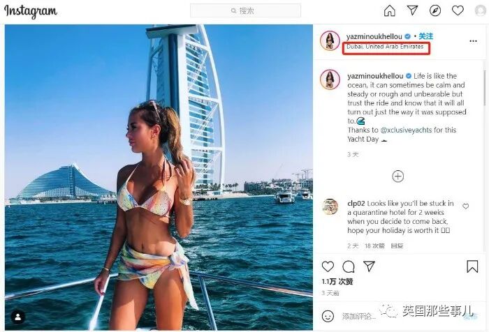 前些天她也晒出在迪拜出海的张片,头巾墨镜比基尼游艇,都是有钱人出国度假的标配。