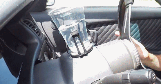 但是想要让车进入到快速过弯的速度,那么车辆一定是处于加速状态下的,也就是即使你加速不过弯的情况下,水会从水杯里洒出来。这也是为什么这么多人做这个实验翻车的原因。