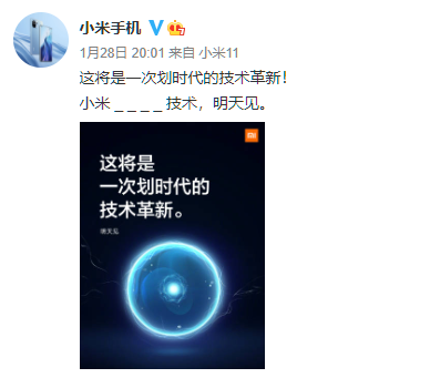事情的起因是昨天晚上,小米在官博上面发了一个预告,暗示一款 “ 划时代 ” 的技术即将发布。