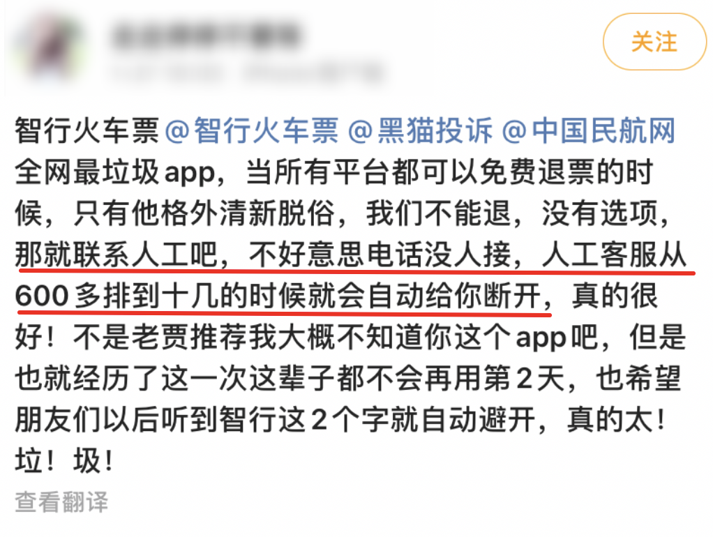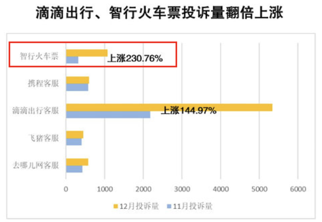 在黑猫平台去年 12 月公布的数据里,就明确提到了 “ 智行火车票的投诉量翻倍上涨 ” 。