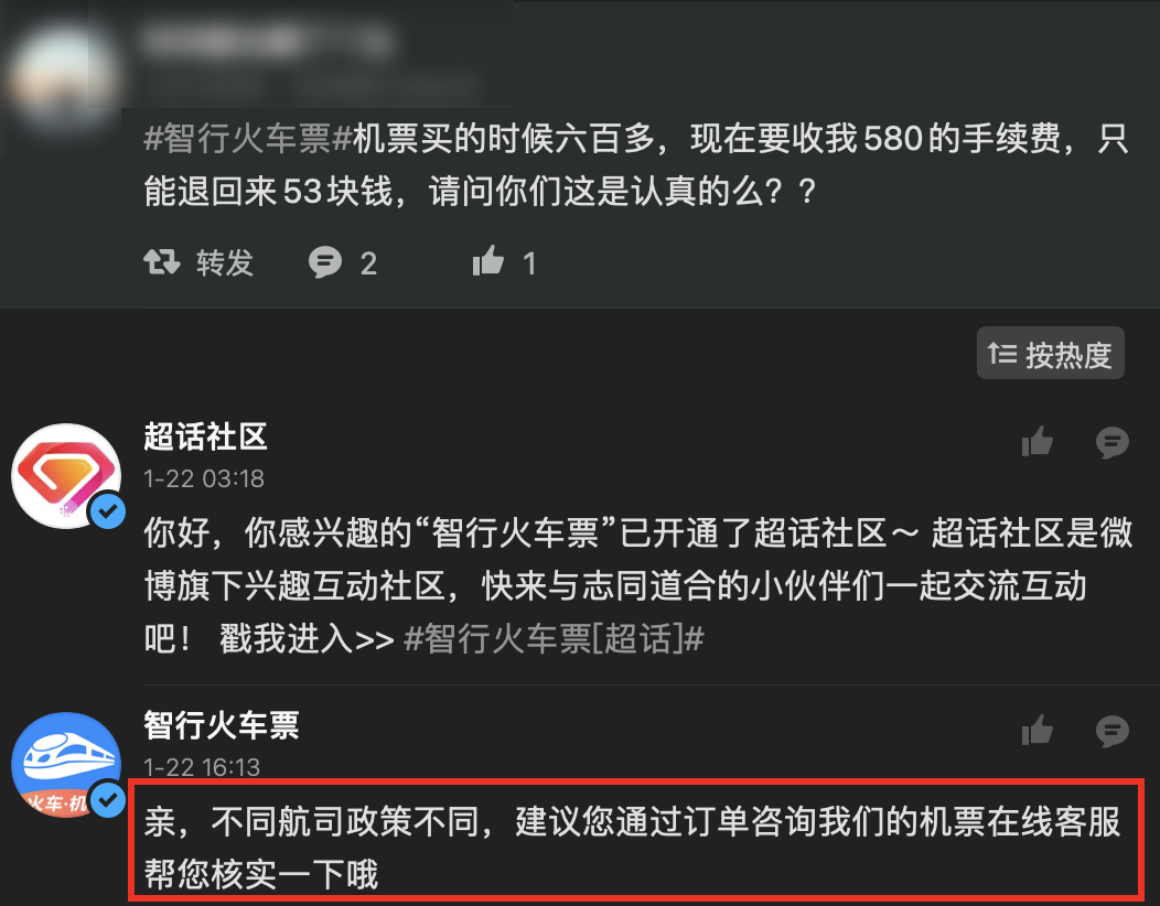 而且智行官方一直以来就在坚持这个说法,不管你怎么问,都说手续费给了出票方。真就睁眼说瞎话,把用户当傻子。