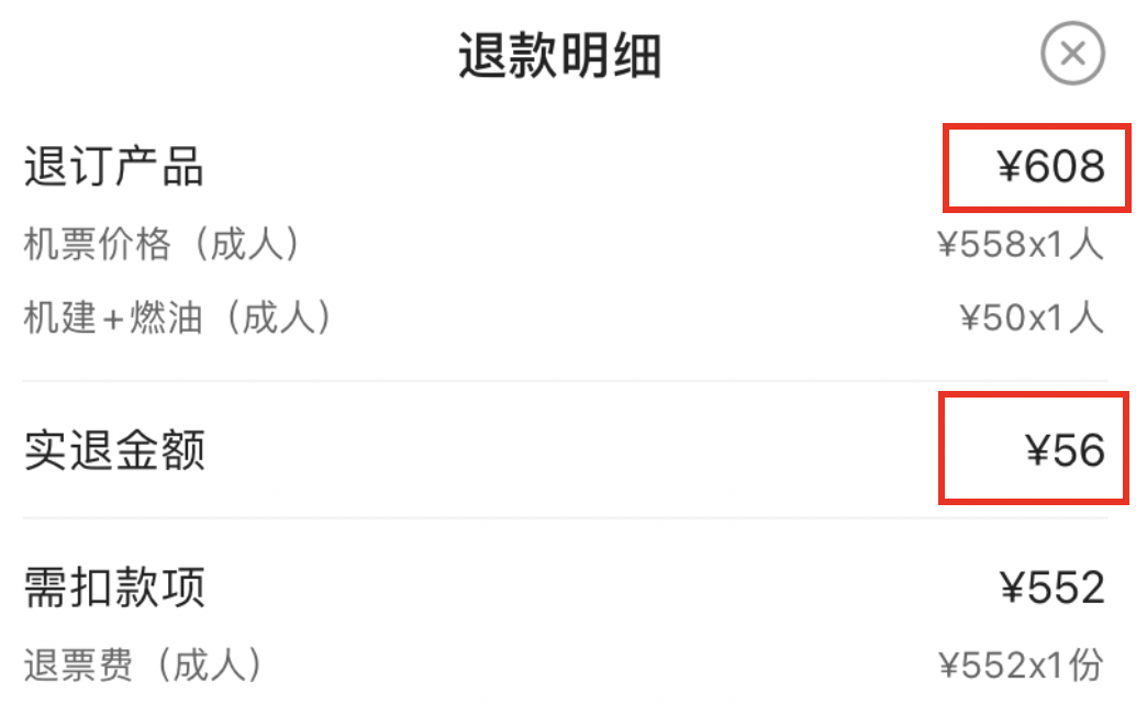 没怎么退过飞机票的 小M 心想,难道飞机票的手续费这么贵吗?