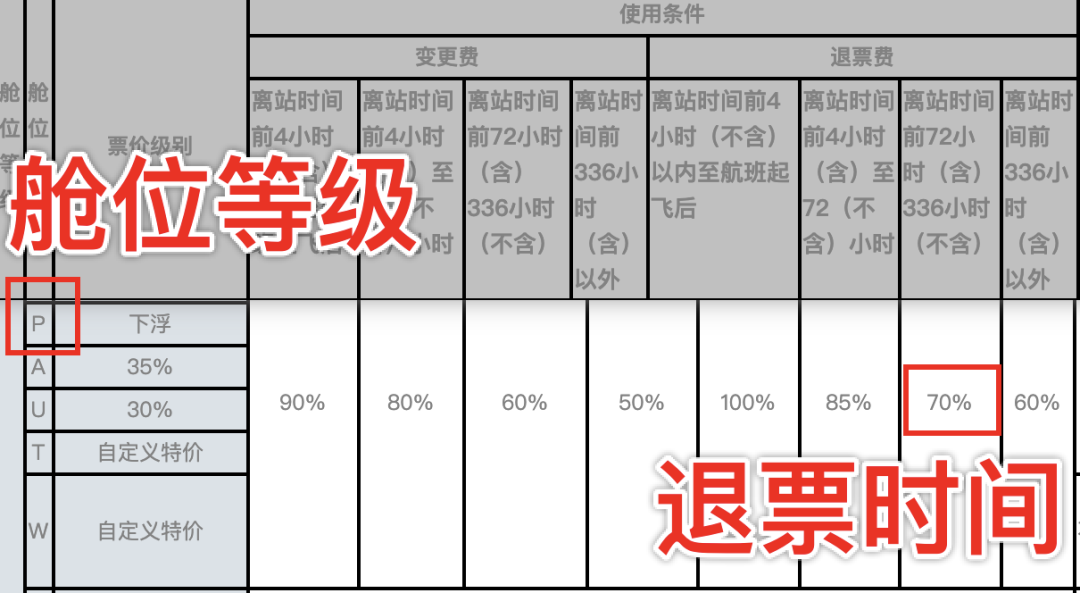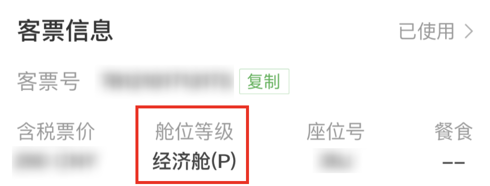 以 小M 的这张机票为例,她的舱位等级是 P 级。