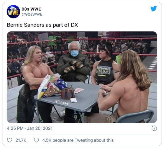 Sanders)没有盛装打扮,没有亲属陪同,只是孤零零在寒风中戴起了自己的毛线手套,就成为了整个就职典礼上最亮眼的一幕,并火速发展成互联网上最风靡的表情包。