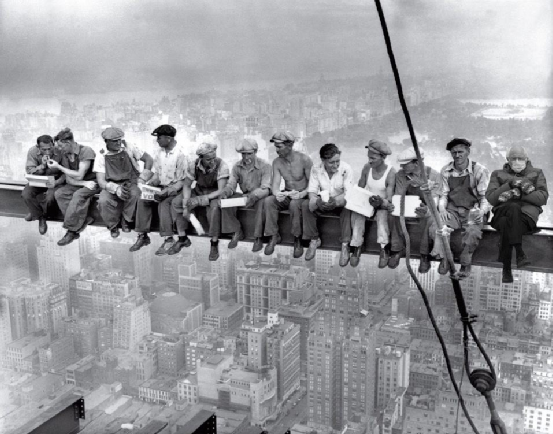 还有人把他P进了著名摄影作品《 摩天大楼上的午餐》(Lunch atop a Skyscraper)里: