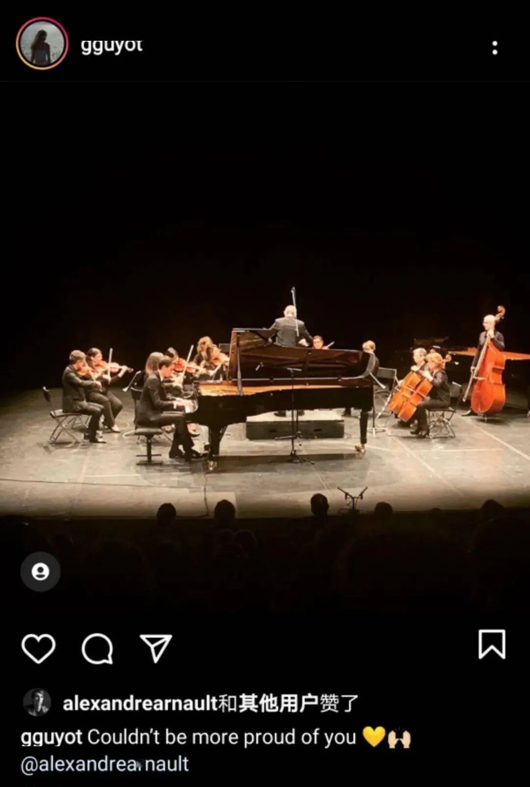 ·未婚妻居约在社交媒体上为亚历山大的钢琴演奏会点赞。