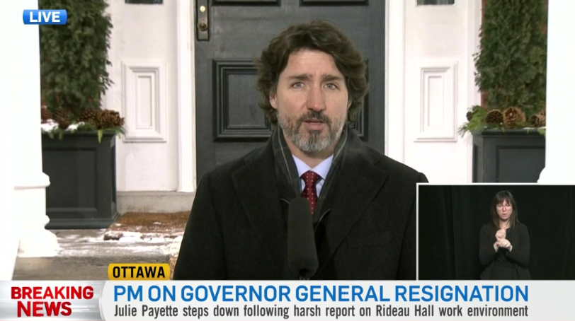 特鲁多总理已向英女王汇报了Julie Payette辞职的情况,加拿大总督一职暂时由加拿大最高法院首席大法官代理,直至新的一届总督被任命。