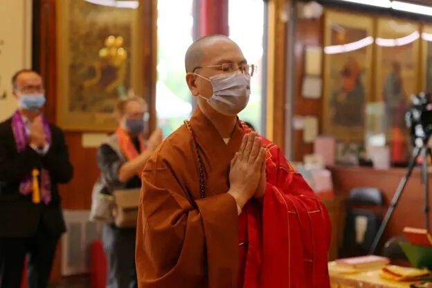 去年的1月25日正好是农历的大年初一,去往湛山精舍祈福的市民们大部分已经戴上了口罩。
