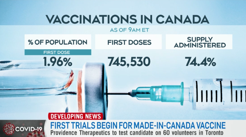 由于辉瑞制药正在扩建在比利时的生产基地,造成辉瑞疫苗产量减少,加拿大本周将无法获得辉瑞疫苗。目前加拿大人口中仅有1.96%至少注射了一剂疫苗,在世界范围排名第13。