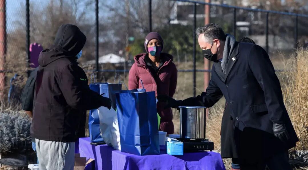 作为第二先生的首次公众亮相,他参与华盛顿地区一个非盈利机构为弱势群体提供食物供给的活动。他表示将把现场所见与妻子一道探讨。