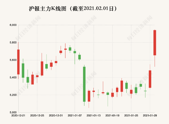 2月1日,伦敦现货白银开盘跳涨逾7%后扩大到10%,一度站上30美元/盎司,刷新2013年2月以来新高!国内期货市场上,沪银主力合约涨幅超9%,突破5900元/千克。
