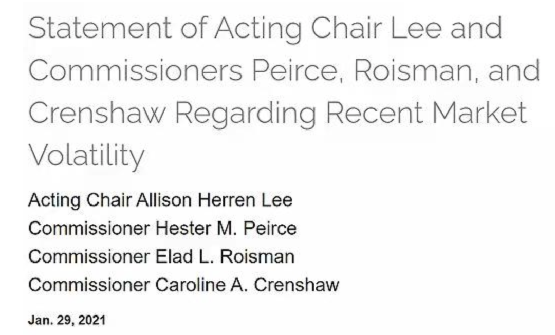 美国证券交易委员会表示,将一如既往地保护投资者,维持公平、有序和有效的市场,“如果有证据表明出现了联邦证券法律所禁止的滥用或操纵交易行为的做法,我们将采取行动保护散户投资者。”