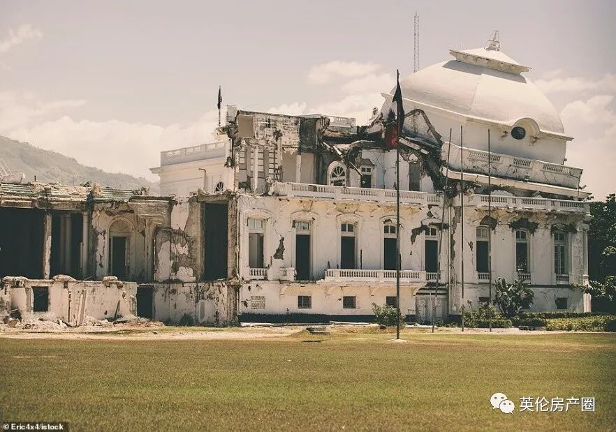 位于海地共和国太子港的总统府在2010年1月的一次强烈地震后坍塌。