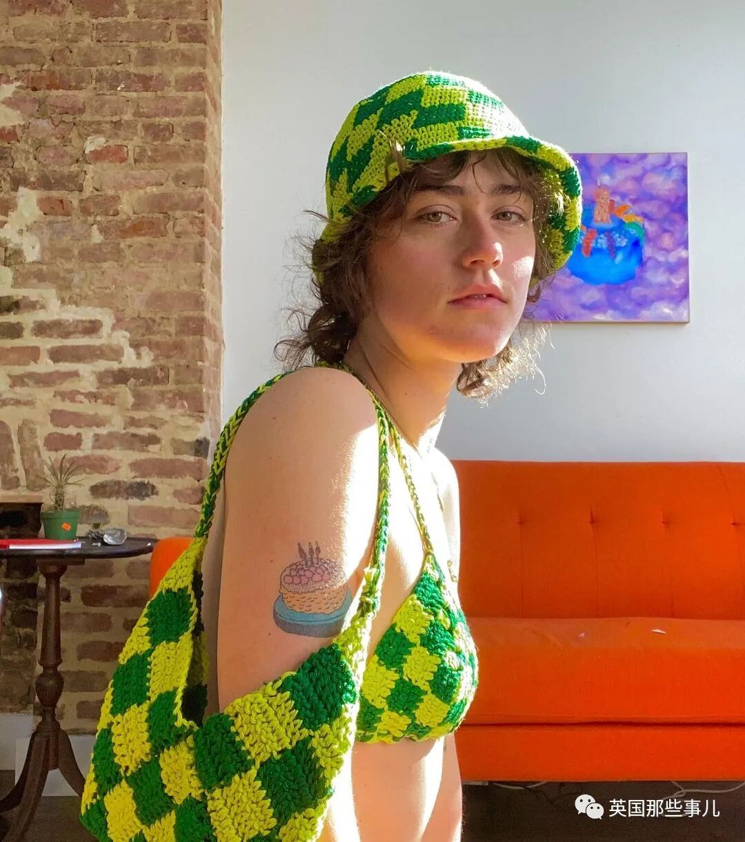 她时不时会在ins上晒出自己的针织设计作品,还会亲身示范: