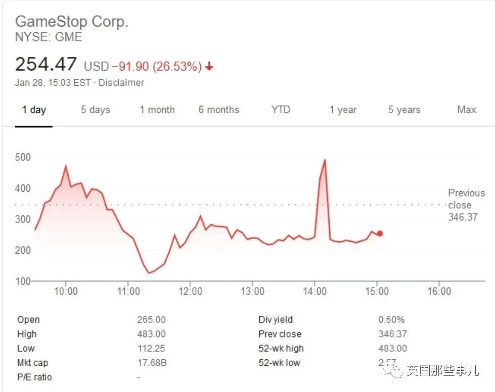 但到1月28日,GameStop的股价首次大跌,变成193.6美元。