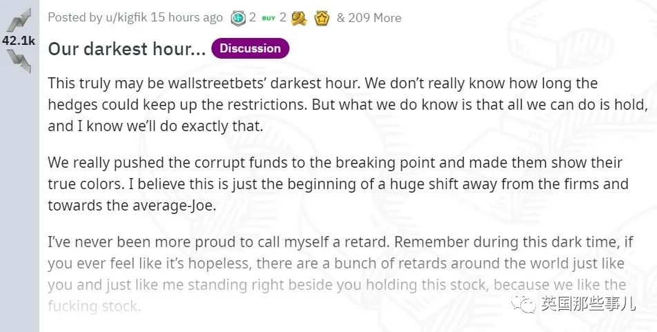 Reddit的核心散户们一看,这不行啊,兄弟们要稳起。