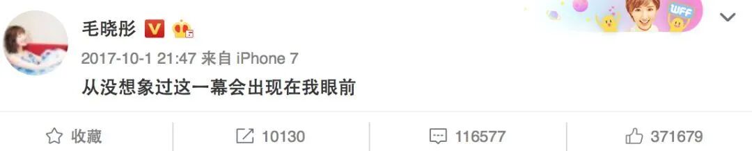 当天发的微博是:「从没想过这一幕会出现在我面前。」