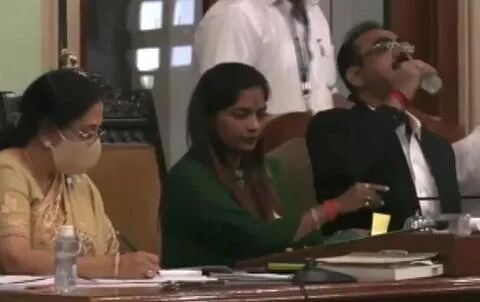 ▲印度官员喝消毒水(ANI视频截图)