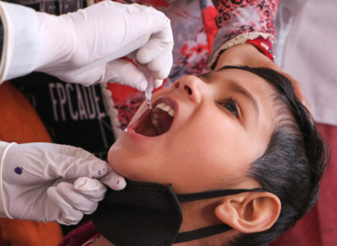 ▲医护人员在为一名儿童滴服脊髓灰质炎疫苗。图源:印度报业托拉斯(PTI)