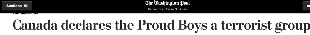 这意味着,加拿大政府以后将把“骄傲男孩”与ISIS、基地组织、真主党等恐怖组织同等看待,坚决予以打击。