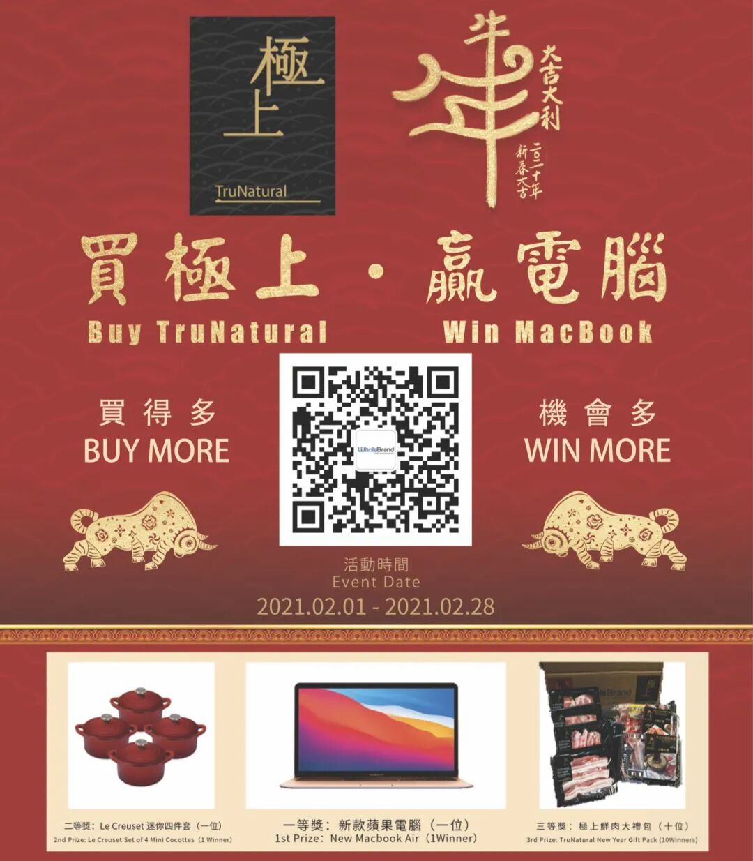4.您可以在整个2月期间,多次购买极上产品,并将小票发至Wholebrand公众号后台。买的越多,中奖几率越大哦~
