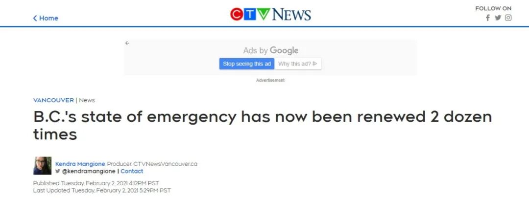 虽然新冠确诊病例下降,但是还不能掉以轻心。2月2日,卑诗省政府宣布,紧急状态将再度延长2周至2月16日。这是自2020年3月18日疫情爆发后,全省第24次发布紧急状态延期,也是卑诗省历史上持续时间最长的一次紧急状态。