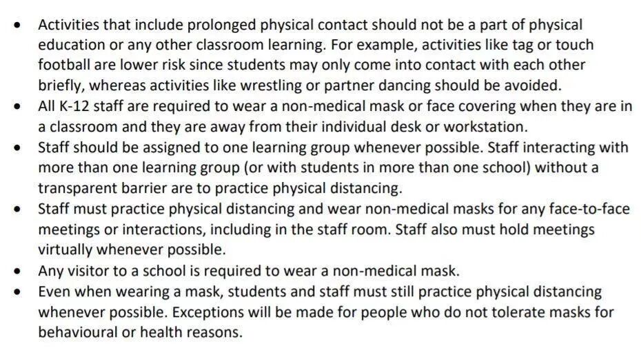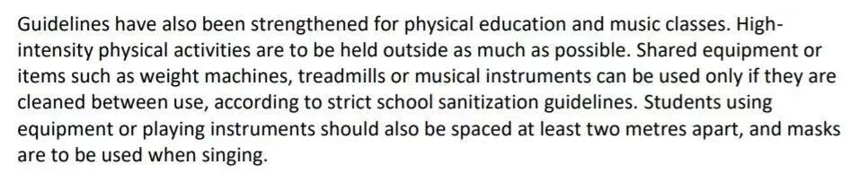 BC省教师联合会(BCTF)对省府终于着手加强学校的防疫措施表示欢迎,并且肯定了卫生厅在强制中学生戴口罩、乐器消毒等方面的举措。但是,BCTF认为还有很多问题没有得到有效的解决,比如:
