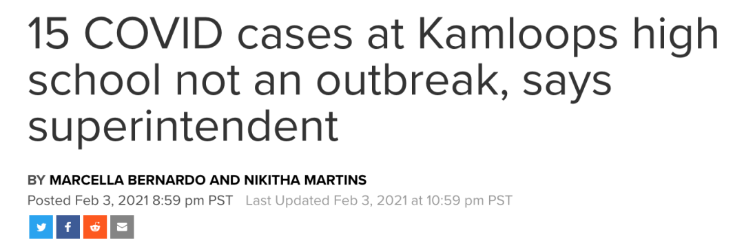 CityNews在近日猛烈抨击了BC省某学区对待疫情的处理方式,甘露市Sa-Hali中学被曝出有15例感染,自从1月18号以来已经发布了5次暴露通知。然而学区校监苏利文(TerrySullivan)竟然认为“这不算疫情暴发”(outbreak)。