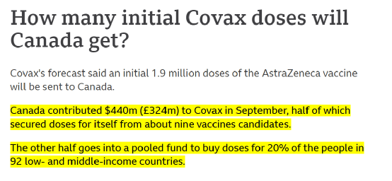 现在加拿大已经准备从COVAX要疫苗了——加拿大的想法非常单纯,我之前捐了那么多钱,凭什么我不能拿?
