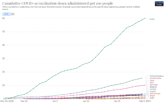 看看图中这一骑绝尘的以色列,别人新冠疫苗接种比例已经破60%了,加拿大羡慕不从大药厂手上搞不到疫苗,加拿大还打起了COVAX组织的主意——这是个啥组织呢?简单来讲,就是一个由全世界一群较富裕的国家共同资助的疫苗共享计划,目的是确保中低收入国家的人能打上疫苗。