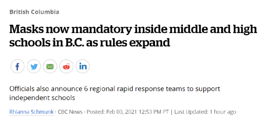 细心的读者应该已经发现了,BC省政府公布的中学校内强制口罩令豁免情况并不包含学校老师和教职员工——也就是说,如果您家的孩子回来之后说老师上课没戴口罩,不要犹豫,请直接发邮件或致电您所在地区的教育局进行举报。