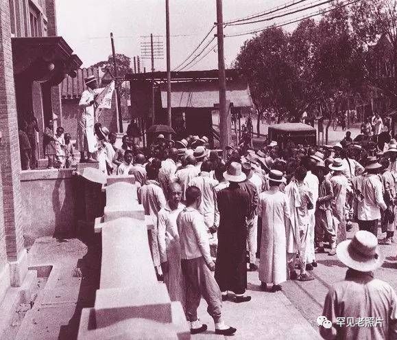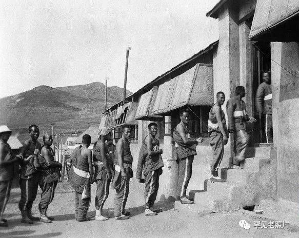 华工远赴法国参加一战,为战后中国获得战胜国地位作出了巨大贡献。图为华工在华工营排队接种疫苗。摄于1917年。