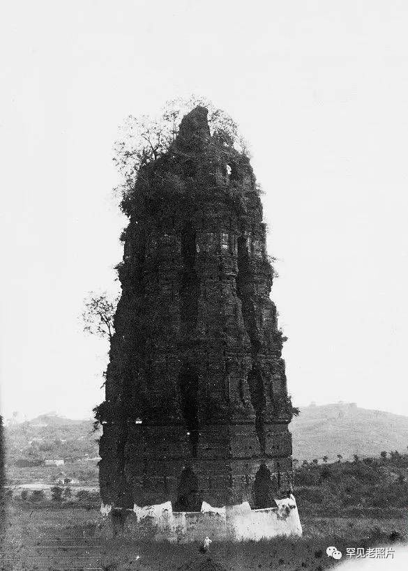 晚清时,西湖南岸的雷峰塔尚未倒塌,塔下面有一个左手叉腰站立着的人,与高大的雷峰塔形成鲜明的对比。