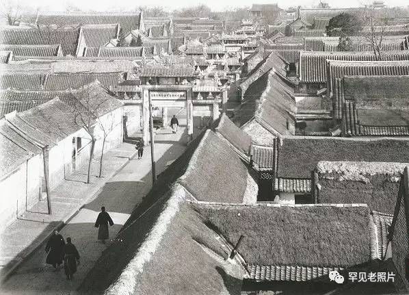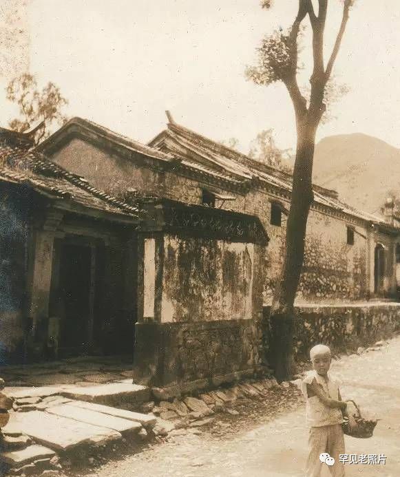 上世纪30年代末,北京西郊碧云寺附近的街道景观。古老而破败的民居,未经硬化的路面,还有站在街上那个神情倦怠的男童,看上去一派萧然。