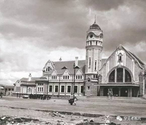 1911年,济南火车站前道路尚在铺设,钟楼上尚未安装大钟。