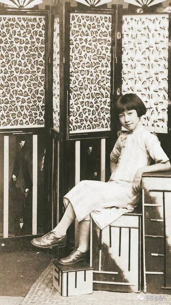 一位少女悠然地坐在屏风前,青春盎然的脸庞流露出一丝忧郁。摄于20世纪40年代。
