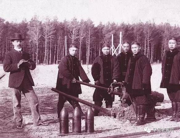 1890年摄于德国埃森梅喷射击场。左一为德国教习瑞乃尔,右二为段祺瑞,余者为商德全、吴鼎元、孔庆塘、滕毓藻。