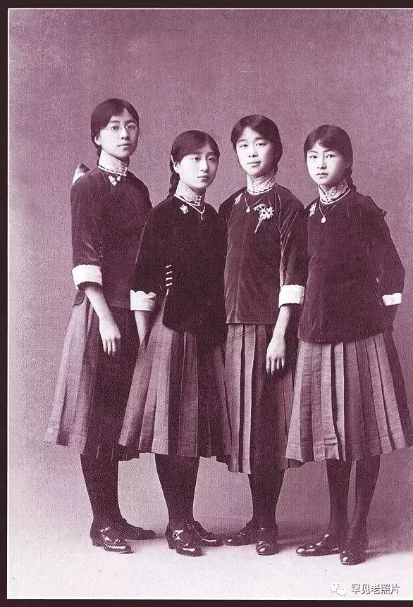 她们身上穿的是北京培华女子中学的校服。摄于1916年。