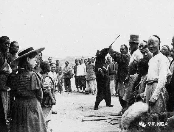 威海成为英国租借地后,很多西方人来此度假。在拍摄的瞬间,杂耍人和围观者的惊愕表情一览无余。摄于20世纪初。