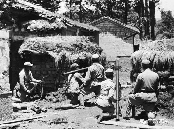 腾冲城外,中国远征军士兵用美式“巴祖卡”火箭筒对据守村落的日军进行攻击。摄于1944年8月1日。
