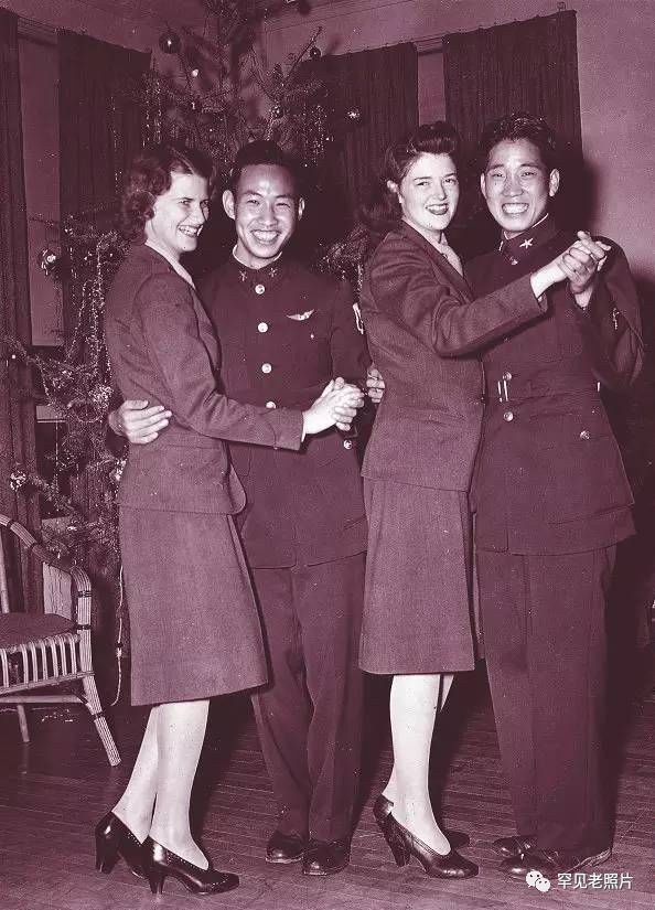 1945年圣诞夜,中国空军某部人员与驻广州的美军联欢。